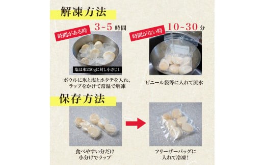 北海道猿払村で水揚げされた新鮮なホタテを急速冷凍し、鮮度保持・衛生管理を徹底的に追求しました。身は厚く締まり、高級なホタテ貝柱です。和・洋・中華どんな料理でも楽しめます。