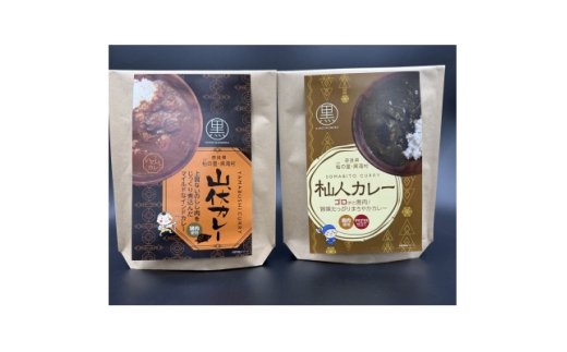 〈山伏カレー〉 上質な猪肉をじっくり煮込んだマイルドタイプの山伏カレーです。 〈杣人カレー〉 ゴロッと鹿肉!旨味たっぷりデミグラス仕立てのまろやか杣人カレーです。 ■注意事項/その他 ※画像はイメージです。 ※直射日光、高温多湿を避け、常温で保存してください。