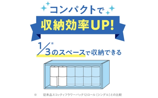 ●4ロールで12ロール分の長さ(※従来品スコッティ フラワーパック12ロール(シングル)との比較)。