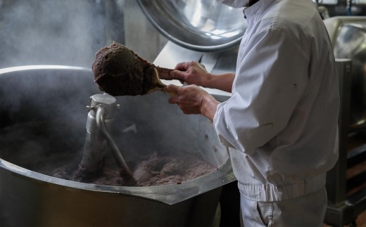 北海道産小豆、ミネラル、オリゴ糖豊富な「てんさい糖」、ガーナ産のカカオマスのみで仕上げたチョコレートのあんこです。保存料、着色料は一切使用しておりません。