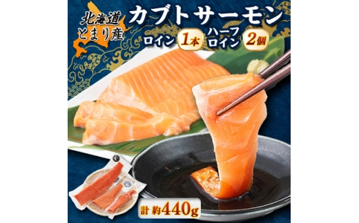 北海道とまりカブトサーモン ロイン1本・ハーフロイン2個(計440g前後)【1566997】