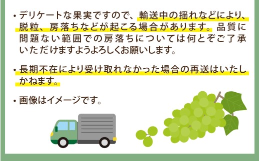 ※デリケートな果実ですので、輸送中の揺れなどにより、脱粒、房落ちなどが起こる場合があります。品質に問題ない範囲での房落ちについては何とぞご了承いただけますようよろしくお願いします。