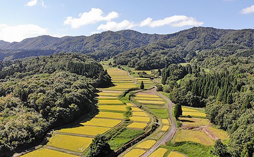 新潟県胎内市鍬江集落の農家が、食の安全にこだわり農薬・化学肥料の使用を抑え、山間地に広がる棚田にて栽培したコシヒカリ「きんのあき」です。
