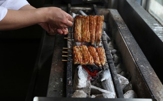 さばいて串打ちをしたうなぎは、焼く前に一度蒸しています。
