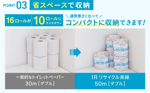 再生紙100%使用のトイレットペーパー ダブル リサイクル美緑50m。