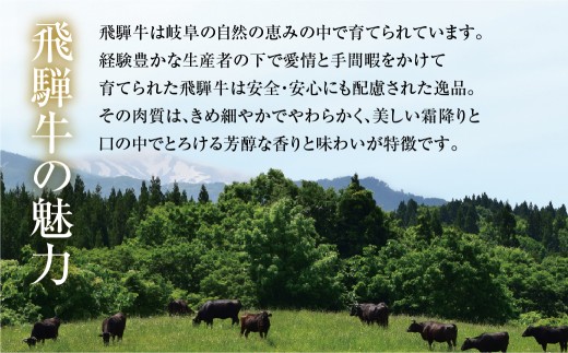 飛騨牛は5年に一度開催される、国内和牛の優劣を競う大会「全国和牛能力共進会」において名誉賞(内閣総理大臣賞)と最優秀枝肉賞という最高位を獲得。全国トップクラスの地位を確立しました。 その肉質は、きめ細やかでやわらかく、美しい霜降りと口のなかでとろける芳醇な香りと味わいが特徴です。
