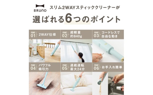 BRUNO スリム2WAYスティッククリーナー アイボリー 掃除機 ハンディクリーナー コードレスクリーナー コードレス掃除機 充電式掃除機 掃除 軽い 軽量 クリーナー すき間掃除 ソファ 吊り下げ 掛け収納 USB充電 フィルター 水洗い可 おしゃれ 家電 ギフト 贈り物 プレゼント 東京 新宿 0152-006-S07-2