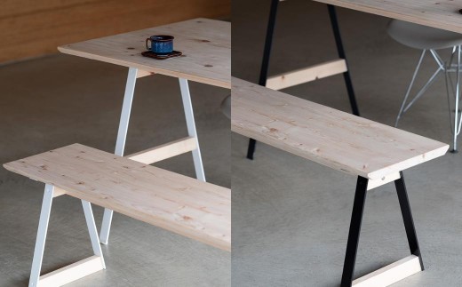 シンプルな構造で作ったこのベンチは様々な空間にフィットするデザインで、色の展開も2色あるため、家のインテリアにあった色をお選びいただけます。同シリーズkinari Tableに合ったデザインでセットで使うとよりまとまりのある空間になります。