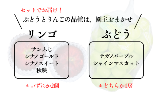お届けするぶどうとりんごの品種は、園主おまかせとなります。