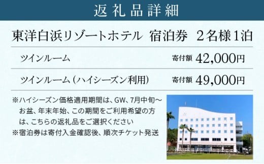 • 東洋白浜リゾートホテル 宿泊券 TWルーム 2名様1泊