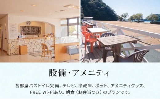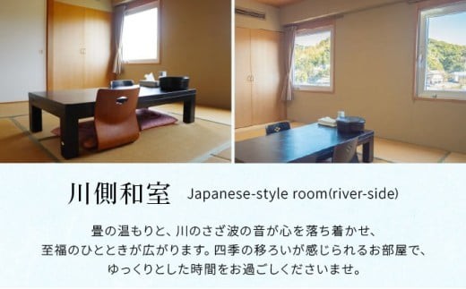 畳の温もりと、川のさざ波の音が心を落ち着かせ至福とひとときが広がります。 四季の移ろいが感じられるお部屋で、ゆっくりとした時間をお過ごしくださいませ。 ~~~大自然が織りなす至福の時間へようこそ~~~ 青く広がる海、そびえ立つ山々、そして四季折々の息吹を感じさせる豊かな自然に囲まれています。 日常を忘れ、心と身体をリフレシュできる癒しの空間で、贅沢なひとときをお過ごしください。 チェックイン:15:00~ チェックアウト:~10:00 各部屋バストイレ完備、テレビ、冷蔵庫、ポット、アメニティグッズ、FREE Wi-Fiあり 朝食(お弁当つき)のプランです。 アメニティは一階フロントにてご自身でお受け取りください。 ■注意点 ハイシーズン価格適用期間は、GW、7月中旬〜お盆、年末年始 この期間をご利用希望の方はこちらをご選択ください。