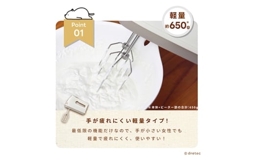 ・ドリテック ハンドミキサー 「フワッソ」ベージュ HM-709BE[1台]