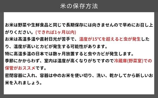 ※ 保管状況次第では米虫が発生することがありますので、15℃以下の涼しい場所で密閉容器等を用いて保存するようお願いします。