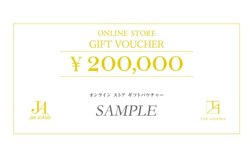 - 「ジュン アシダ オンラインストア ふるさと納税専用ページ」にて、お好きな商品の購入にご利用いただけるオンラインストア専用バウチャーで、20万円分です。