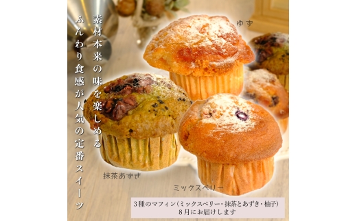 8月 3種のマフィン(ミックスベリー・抹茶とあずき・柚子)