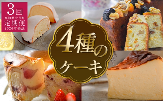 【定期便 3回】スイーツ定期便 ケーキ4種セット