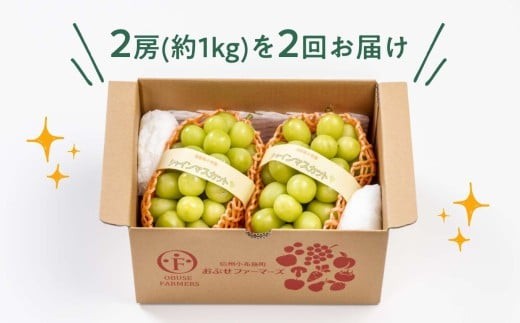 - 【2回定期便】秋と冬に食べるシャインマスカット 2房(約1kg)× 2回[おぶせファーマーズ] 果物 フルーツ ぶどう 葡萄 数量限定 長野 信州 令和7年産 【2025年10月~12月発送予定】 [F-67]