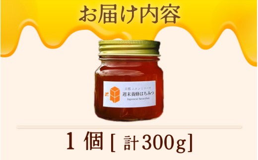 ニホンミツバチのはちみつ 300g×1本 | 京都産 非加熱 国産 百花蜜 自然のままの純粋蜂蜜 はちみつ ハチミツ 蜂蜜 ハニー 瓶詰 (週末養蜂)