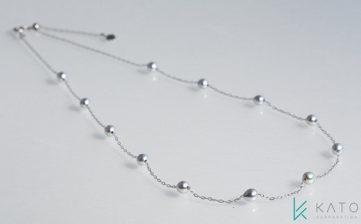 ナチュラルブルーのベビーパール(あこや真珠 4~4.5mm)を使用したステーションネックレス。