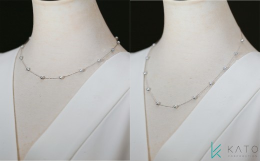 チェーンはプラチナ製で最長 45cm まで調節可能。