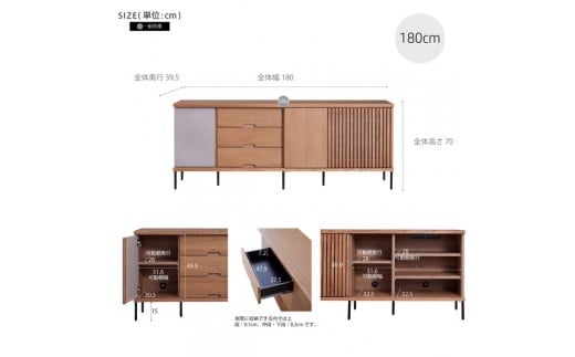 サイズ:幅180cm×奥行39.5cm×高さ70cm