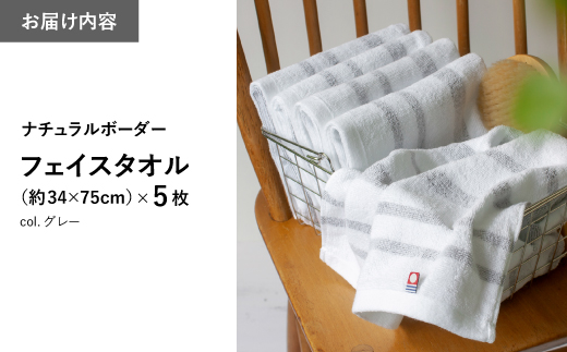 ナチュラルボーダー フェイスタオル(5枚・グレー) 【m100-17-B】【トクダ】 2298514 - 大阪府箕面市