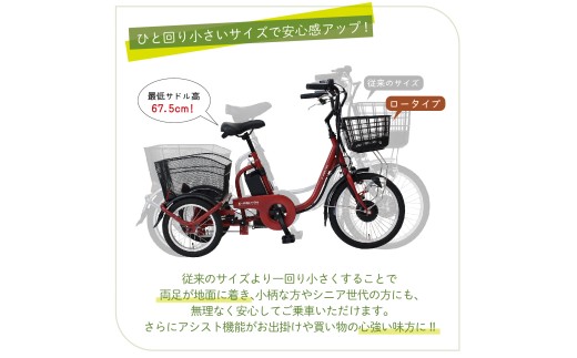 イーパートン ロータイプ電動アシスト三輪自転車は、ひと回り小さいサイズで安心感アップ!