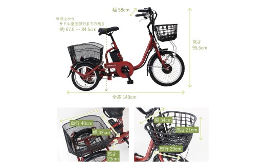 ●カゴサイズ:前カゴ約W34×D29×H21cm、後カゴ約W32×D40×H23cm