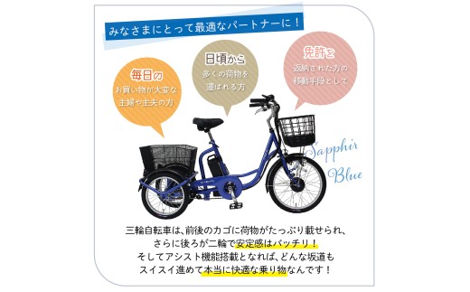 - イーパートン 電動アシスト 三輪自転車 サファイアブルー 送料無料 BEPN20SB(組立なし) CC005