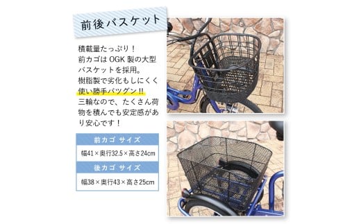 ●カゴサイズ:前カゴ約W41×D32.5×H24cm、後カゴ約W38×D43×H25cm