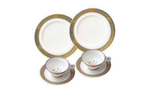 新古典様式の端正な輝きが魅力のデザイン。マリーアントワネットが愛用した錦織をモチーフに端正に仕上げた美しいテーブルウェアです。