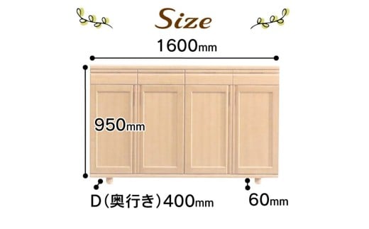 サイズ:幅160cm×奥行40cm×高さ95cm(+脚6cm)