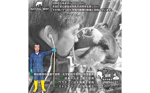 穀物を一切与えず、放牧によりのびのびと健康的に育った牛の肉質は、赤身が多く旨みが凝縮され、あっさりとした中に深いコクを感じ、お肉本来の味わい、香りをお楽しみいただけます。