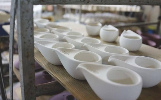 独特の曲線をまとった急須「ひとしずく」は有限会社藤総製陶所の人気商品。急須は萬古焼を代表する商品ですが、デザイン性や機能性の面で、これまでの伝統にとらわれない様々な工夫が施されています。茶器は丁寧な手作業により製造されており、茶こし部分の小さな穴や注ぎ口の「かえし」には、他社には真似のできない職人の技術が光ります。