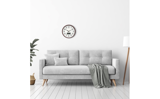 表示が切り替わるため、1つの液晶でカレンダー/温度・湿度の情報を確認することができます。判読性の高いユニバーサルデザインフォントも使用していて、みやすい掛時計です。
