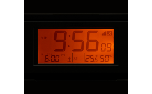 ナチュラルな木目調がインテリアになじむデジタル目覚まし時計です。 ●電子音アラーム(4段階に変化) ●スヌーズ&アラームオートストップ ●カレンダー表示(2099年12月31日まで) ●温度表示(-9.9~50℃) ●湿度表示(20~95%) ●六曜表示(2030年12月31日まで) ●12(午前・午後)/24時間表示切替式 ●時刻/カレンダー表示切替式 ●残照機能ライト ●電波サーチ機能 ・・・電波の状態をチェックしその場所が受信可能かをお知らせ ●電波OFF機能 【提供:リズム株式会社】