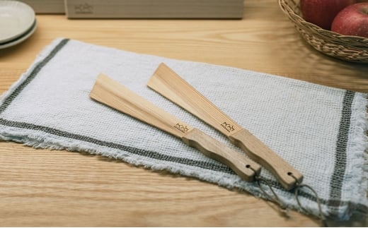 〇和室の装飾などに用いられる「柾目(まさめ)材」を使い、反りにくく、しなやかな特性を活かした新感覚の木製ターナー。