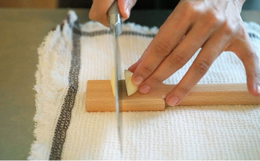 〇握りやすく、軽い力ですりおろすことができます。すりおろした薬味を鍋のふちで叩き落し、そのまま混ぜることも。
