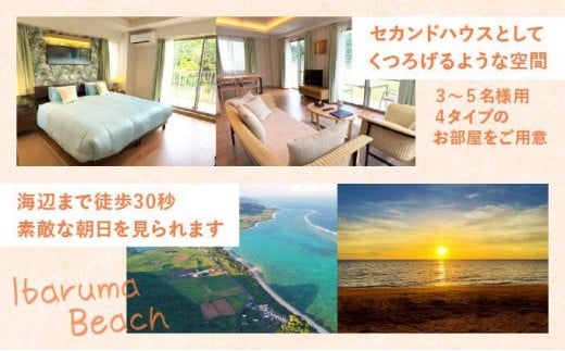 長期滞在に必要な設備を備えたヴィラタイプの宿泊施設で、日常的な空間を提供しセカンドハウスとしてくつろげるような空間を提供。 海辺まで30秒。素敵な朝日を見ることできます。 3名~5名用のお部屋をご用意しております。 朝食付もご用意可能です。 夕食は石垣牛含むバーベキューをご用意しております。(要予約) 97m2、118m2、119m2、137m2の4タイプをご用意しております。 ======================== ◆ご予約について◆ 予約締め切り日:宿泊予定日の10日前 予約方法:弊社ホームページもしくはお電話にてご予約いただいた方のみ、ご利用いただけます(現地決済のみ)。 ※ホームページからのご予約の場合、お支払い方法は必ず「現地払い」をお選びください。 【留意事項】 ・宿泊チケットのお届け日指定を承ることはできません。 ・宿泊チケットの払い戻し、現金への引き換えは致しかねます。 ・宿泊チケットの盗難、紛失等について、当館は責任を負いかねます。