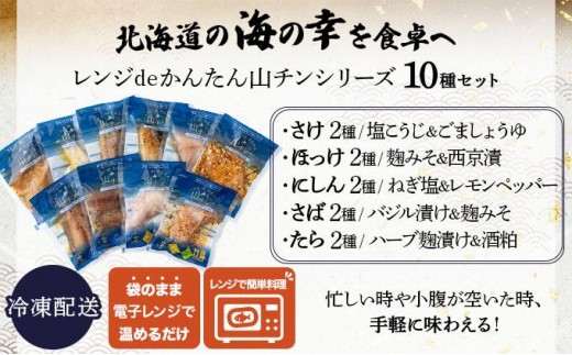 • レンジdeかんたん 山チンシリーズ 10種セット:さけ・ほっけ・にしん・さば・たら(各2種類ずつ)