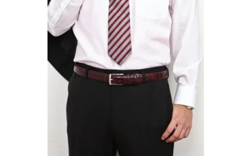 耐久力の高い本革にクロコダイル調の型押しレザーを使用した、ラグジュアリー感の漂うビジネスベルト。