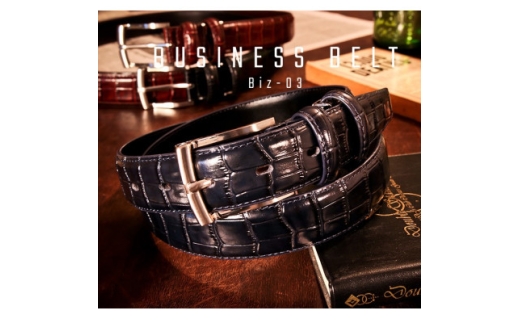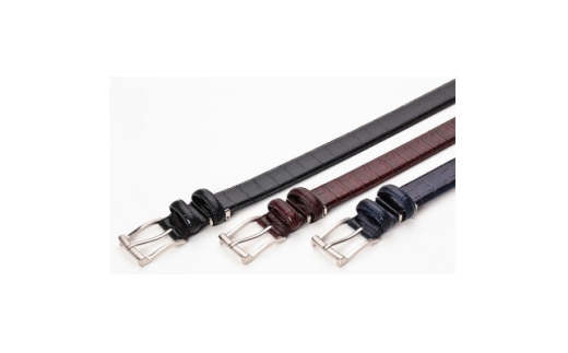 耐久力の高い本革にクロコダイル調の型押しレザーを使用した、ラグジュアリー感の漂うビジネスベルト。