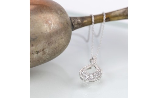 大小のダイヤモンドが繊細に配置され、トータル0.37ctの輝きが胸元を引き立てます。