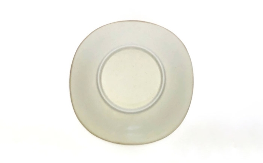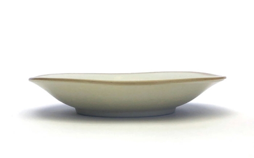 シルエットがやさしい丸みをおびた四角のカレー皿、手描きの線もあえて淡い広がりが出るようにしました。