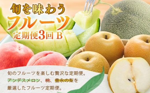 - 【フルーツ3回定期便B】2026年発送分 アンデスメロン・桃・梨 3回配送 旬 フルーツ 定期便 数量限定 メロン 球磨の桃 豊永の梨 果物 名産 熊本 多良木町 092-0508