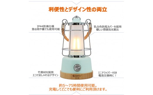 - LEDランタン 調光 乾電池&充電兼用 最長75H点灯 電球色 昼光色 明るさ調節 無段階調整 充電式ランタン DS-8E-MGN