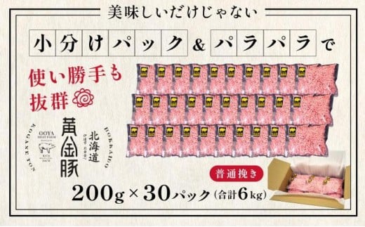 - <11月発送><黄金豚>ブランドポーク 北海道 豚ひき肉 普通挽き 200g 30パック 計6kg | 伊達産 黄金豚 三元豚 ミンチ 挽肉 お肉 小分け ハンバーグ 餃子 カレー 大矢 オオヤミート 冷凍 送料無料