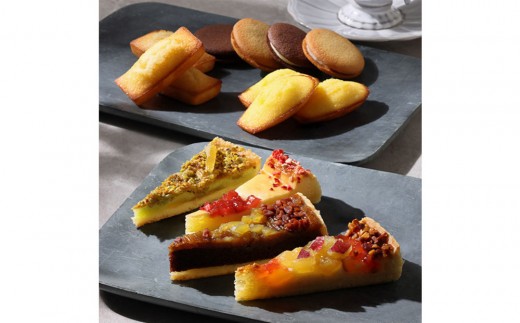 季節限定のタルト・フリュイのほか、自慢のフィナンシェやマドレーヌ、ラング・ド・シャが入ったバリエーション豊富な詰め合わせ。