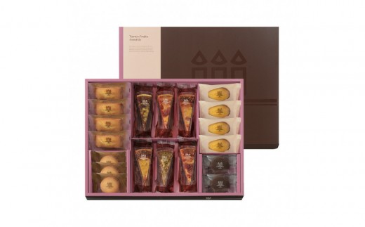 季節限定のタルト・フリュイのほか、自慢のフィナンシェやマドレーヌ、ラング・ド・シャが入ったバリエーション豊富な詰め合わせ。
