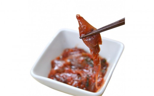 お刺身品質の富山産の朝どれのホタルイカを匠の職人が手作業で目などの60年以上の経験をもつ職人が全工程を手作業で下処理を施し、特製ヤンニョムで熟成させた老舗魚や・仕出し料理店のオリジナル商品。一口食べると、外は“ぷりぷり”で、濃厚なワタがたっぷり、中は“とろっと”、口に広がる「たっぷり濃厚なワタ」。